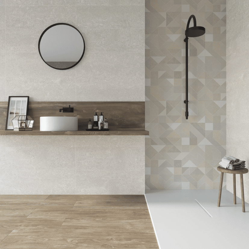 Se caracteriza por un estilo sobrio, elegante y contemporáneo. Su tonalidad gris perla con vetas sutiles suele evocar piedra natura, lo que lo hace muy versátil.