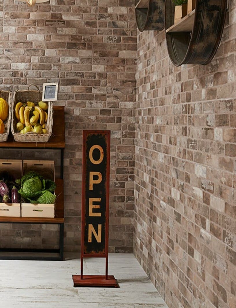 Fachaleta de cerámica imitación ladrillo con aspecto ahumado o envejecido , para interiores y exteriores.