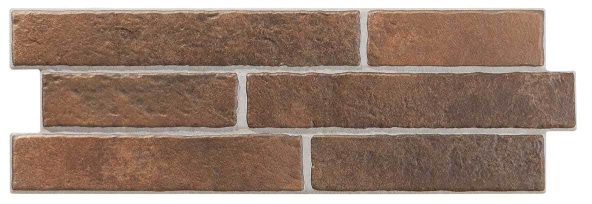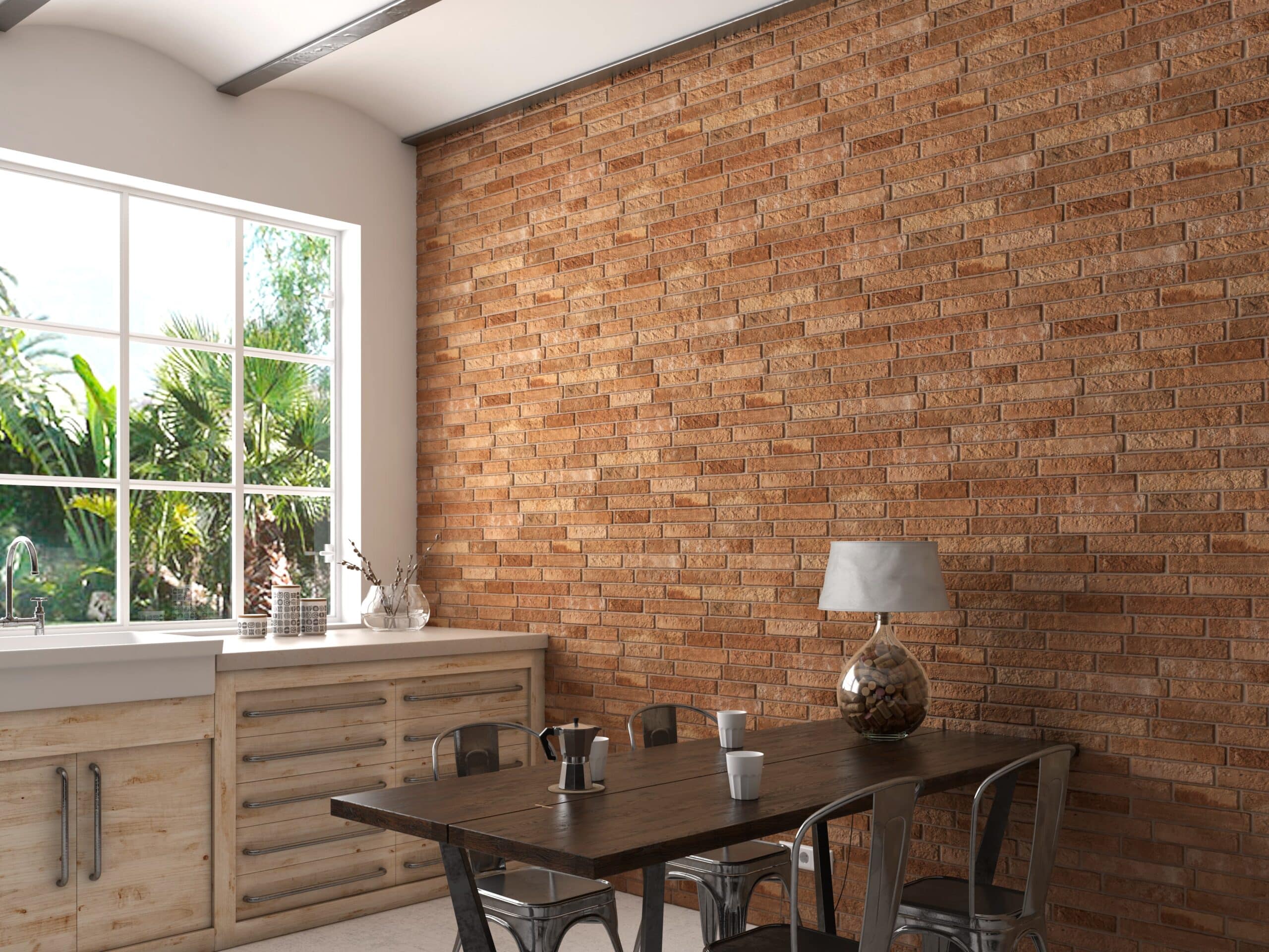 Aspecto rústico-industrial del ladrillo, ideal para proyectos que buscan calidez terrosa con un toque dramático y contemporáneo.