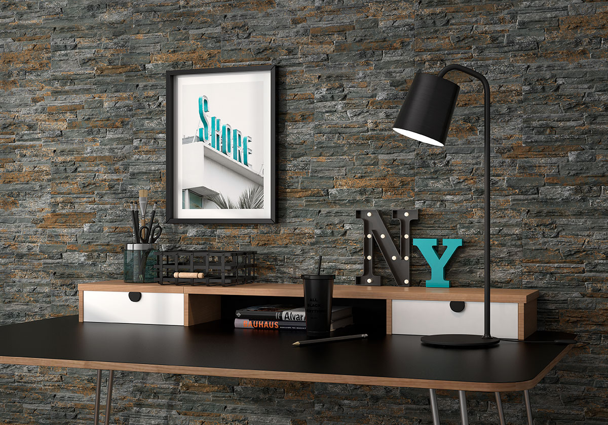 Fachaleta que emula la apariencia de la piedra lajada, ofreciendo una estética natural y sofisticada tanto para interiores como exteriores. Su diseño y acabado mate proporciona un aspecto realista y texturizado, ideal para crear ambientes con carácter y elegancia.