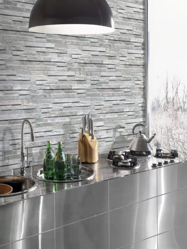 Fachaleta porcelánica imitación piedra, para interiores y exteriores.