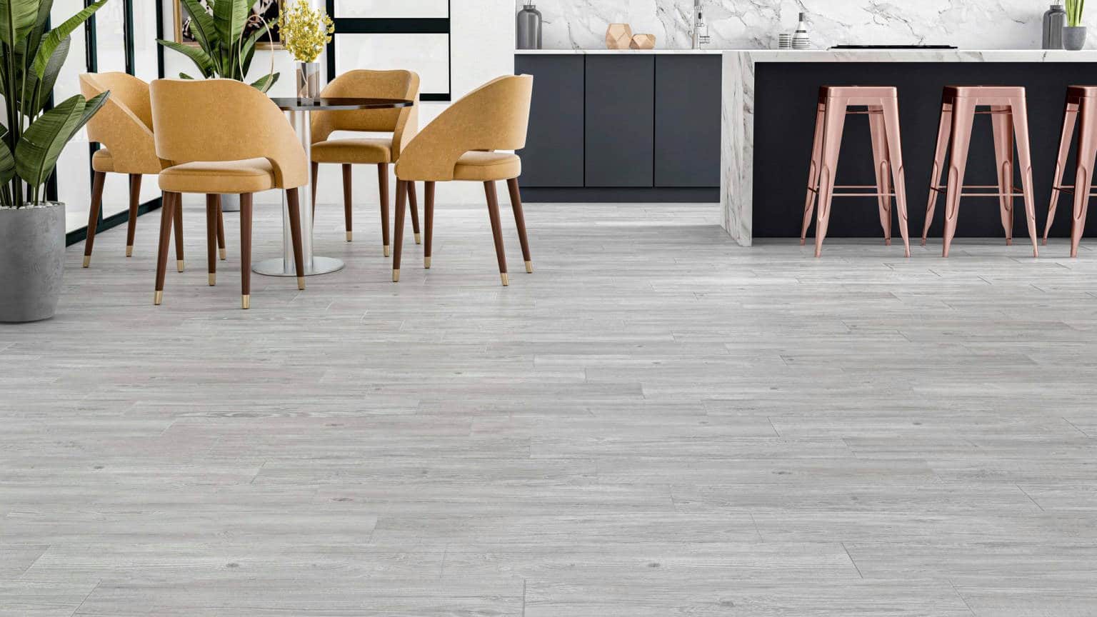 Es un piso versátil y elegante, diseñado para emular la textura y calidez de la madera natural, paleta de grises sutiles y modernos que brindan luminosidad y amplitud.