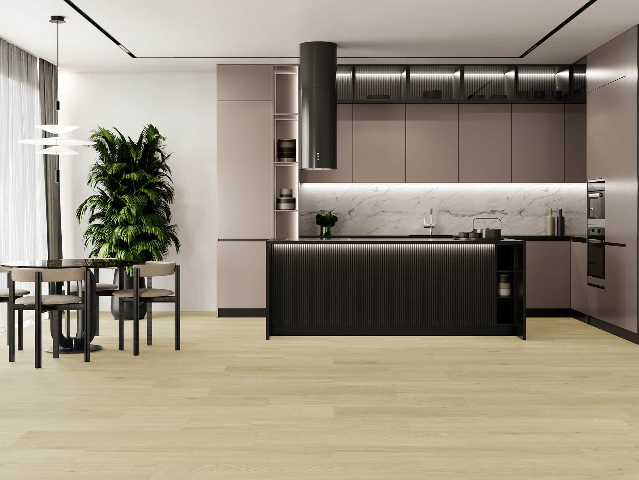 Es una opción elegante que emula la calidez y textura de la madera de nogal, combinando estética natural con la durabilidad del porcelanato.