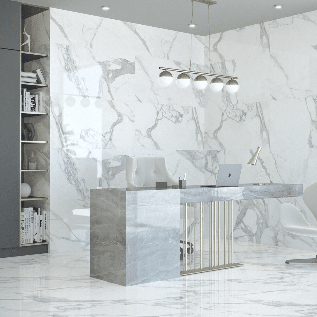 El porcelanato Medici White es una interpretación del mármol, el cual es un material hermoso y noble, su fondo blanco y veteado gris característicos del mármol calacatta y carrara permiten una lectura contemporánea de un clásico que embellece el espacio con elegancia y exclusividad.
