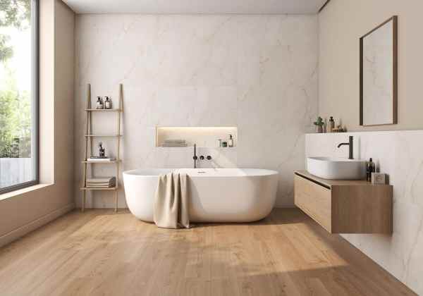 Evoca la esencia de las piedras calcáreas como el mármol Bianco Carrara. Es una elección atemporal que aporta calidez y luminosidad, ideal para quienes buscan un equilibrio entre lo natural y lo refinado.