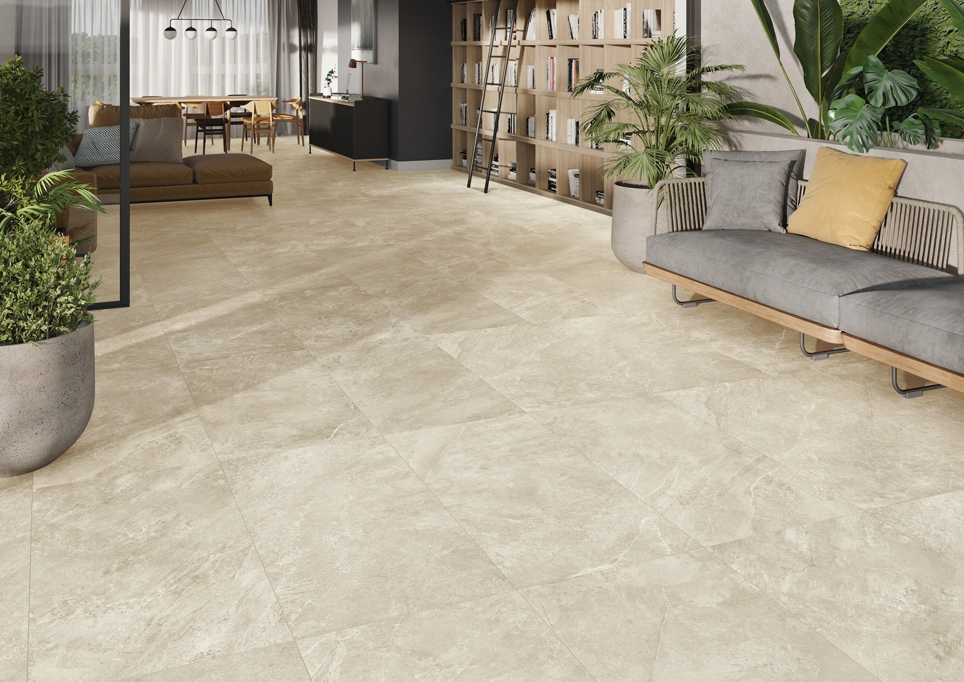Se inspira en la belleza atemporal de la piedra natural, ofreciendo una estética cálida y versátil que se adapta a diversos estilos de diseño. Su tono arena suave y acabado mate lo convierten en una opción ideal para crear ambientes acogedores y sofisticados