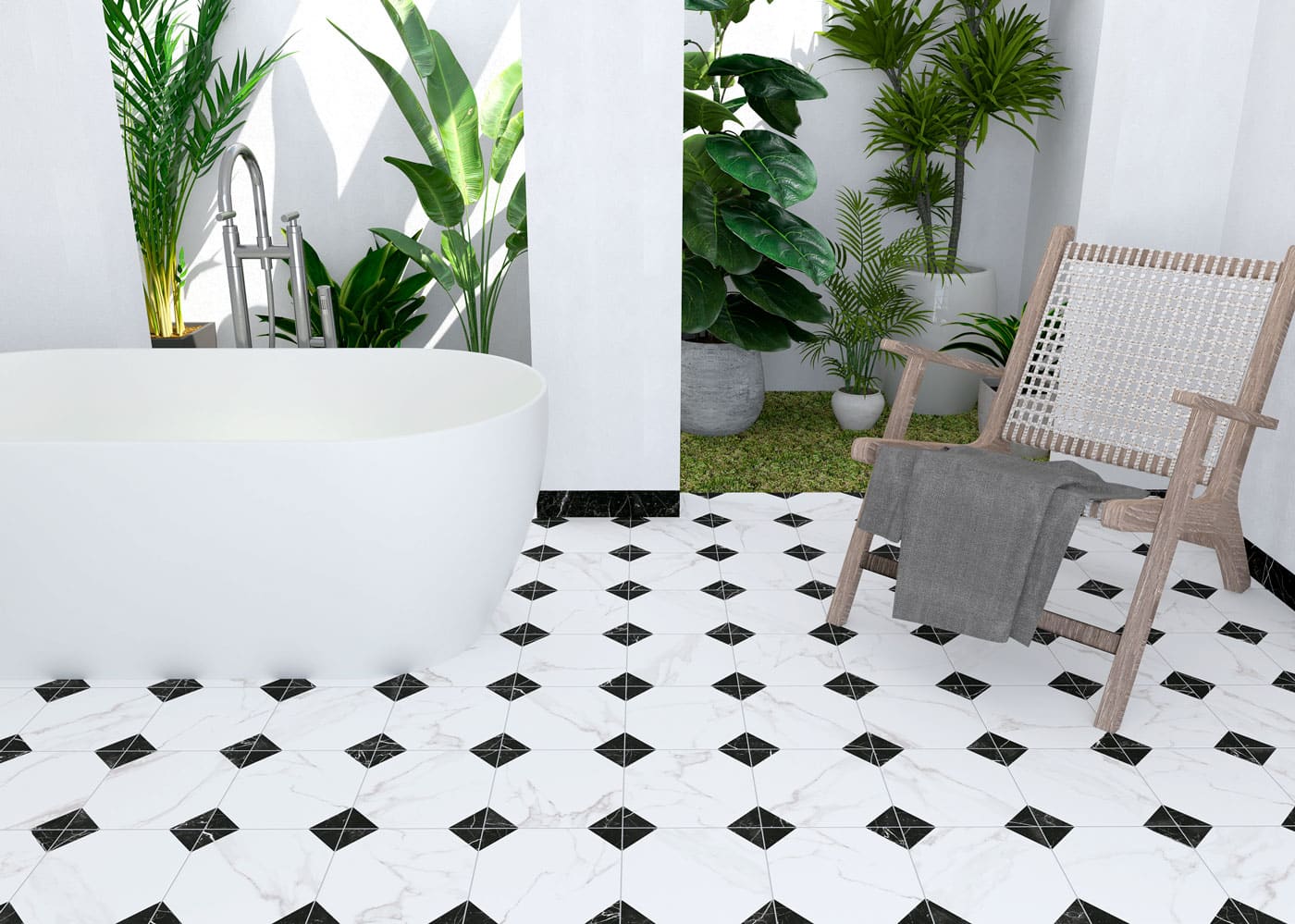 Se inspira en la elegancia minimalista y la pureza de los espacios contemporáneos, evocando la luminosidad y la serenidad de la arquitectura italiana moderna. Su formato pequeño evoca la tradición de la baldosa hidráulica o la cerámica artesanal.