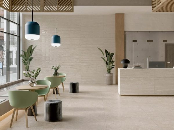 Tiene un diseño moderno y elegante, con un acabado lapado que resalta sus vetas sutiles.