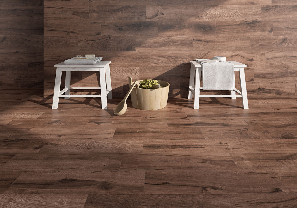 Porcelanato reconocido por su diseño que imita fielmente la textura y los nudos de la madera natural, aportando un toque rústico, cálido, natural y acogedor a los ambientes.