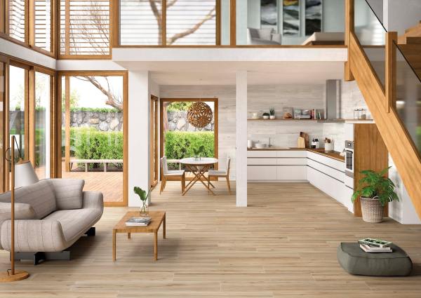 Captura la esencia rústica y acogedora de la madera, pero con la resistencia y versatilidad del porcelanato. Su diseño reproduce fielmente las vetas, nudos y tonalidades cálidas de la madera natural, creando ambientes llenos de calidez y elegancia.