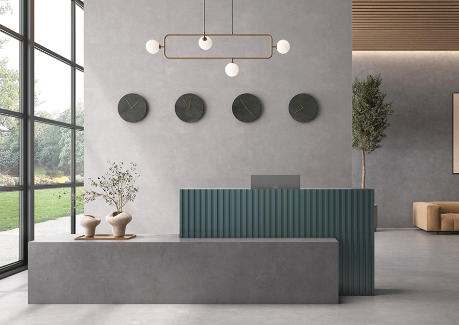 Inspirado en la estética del cemento alisado y el concreto urbano, ofreciendo una solución elegante y atemporal para interiores modernos, industriales y minimalista