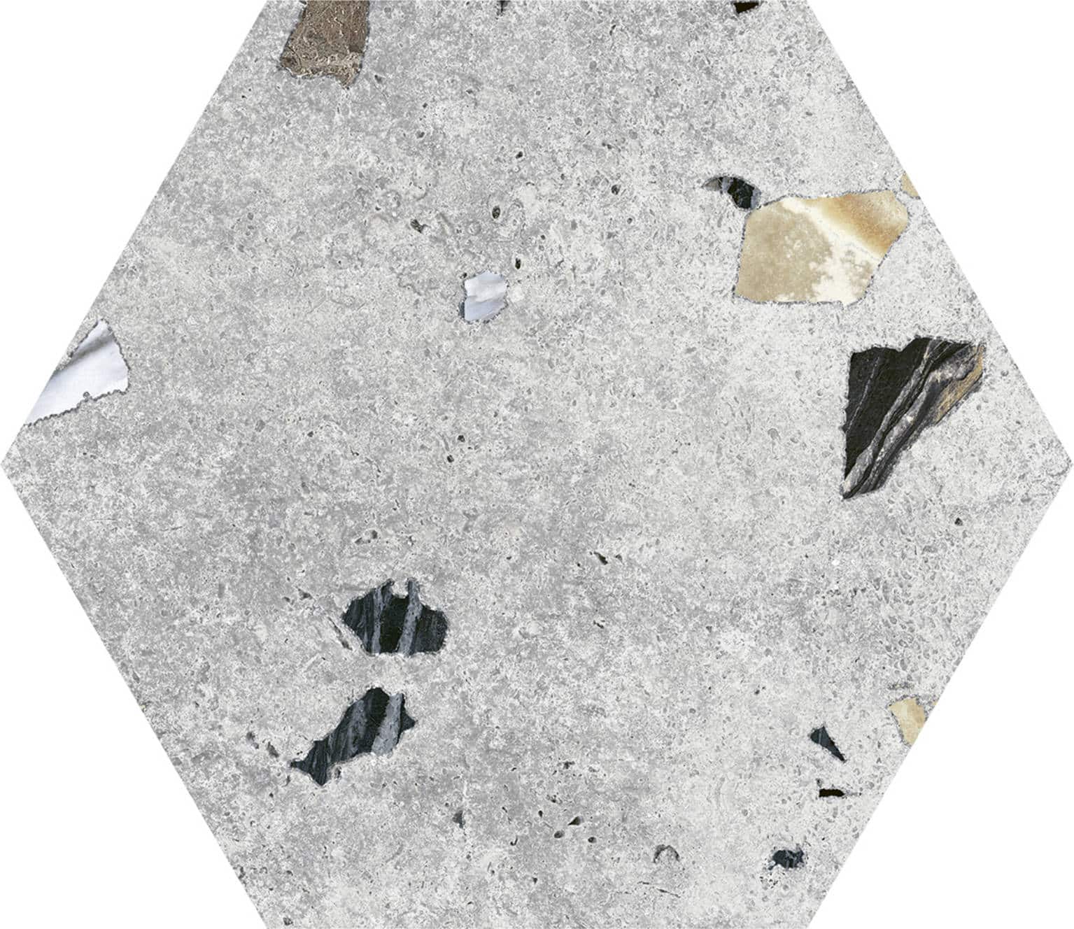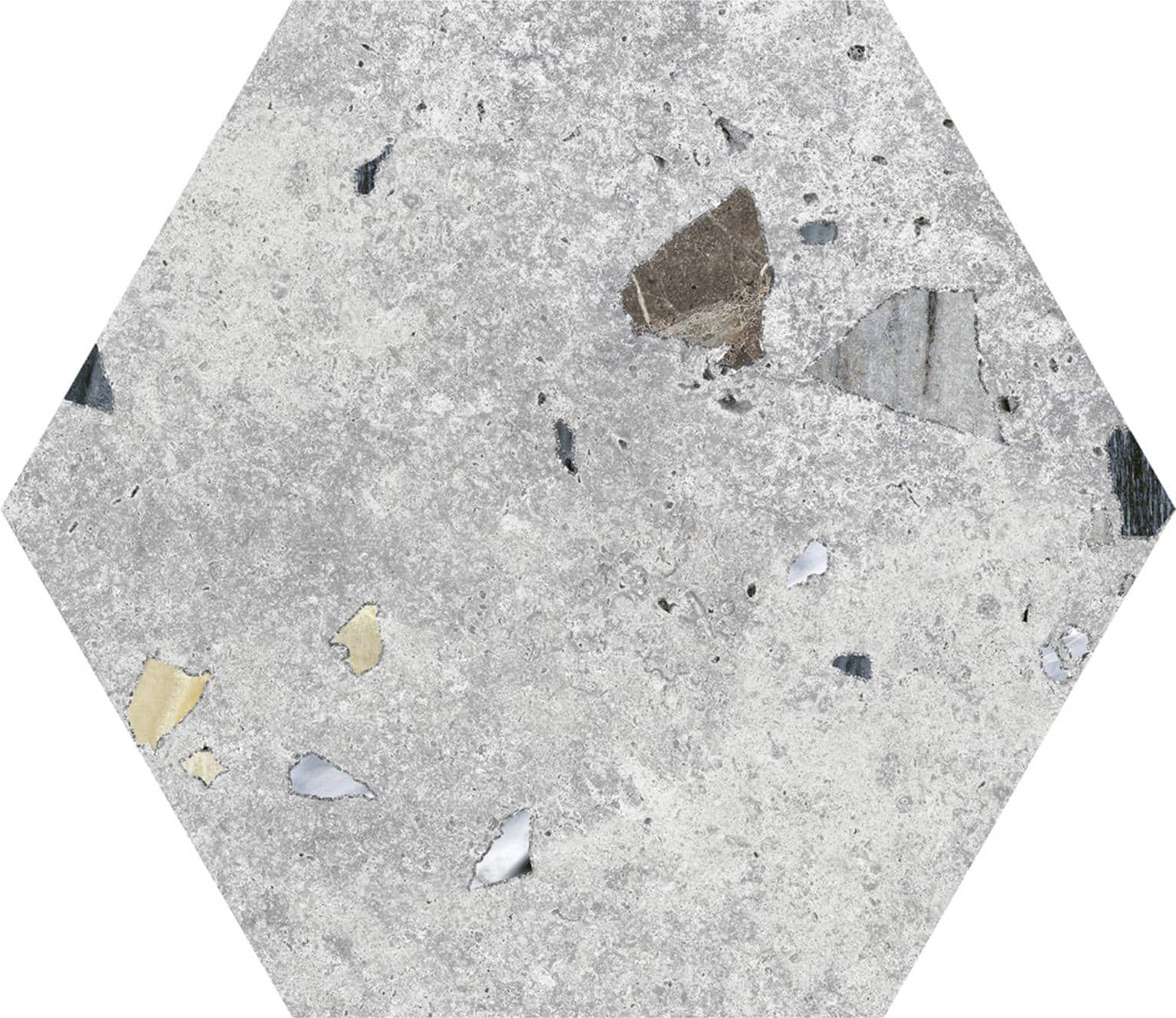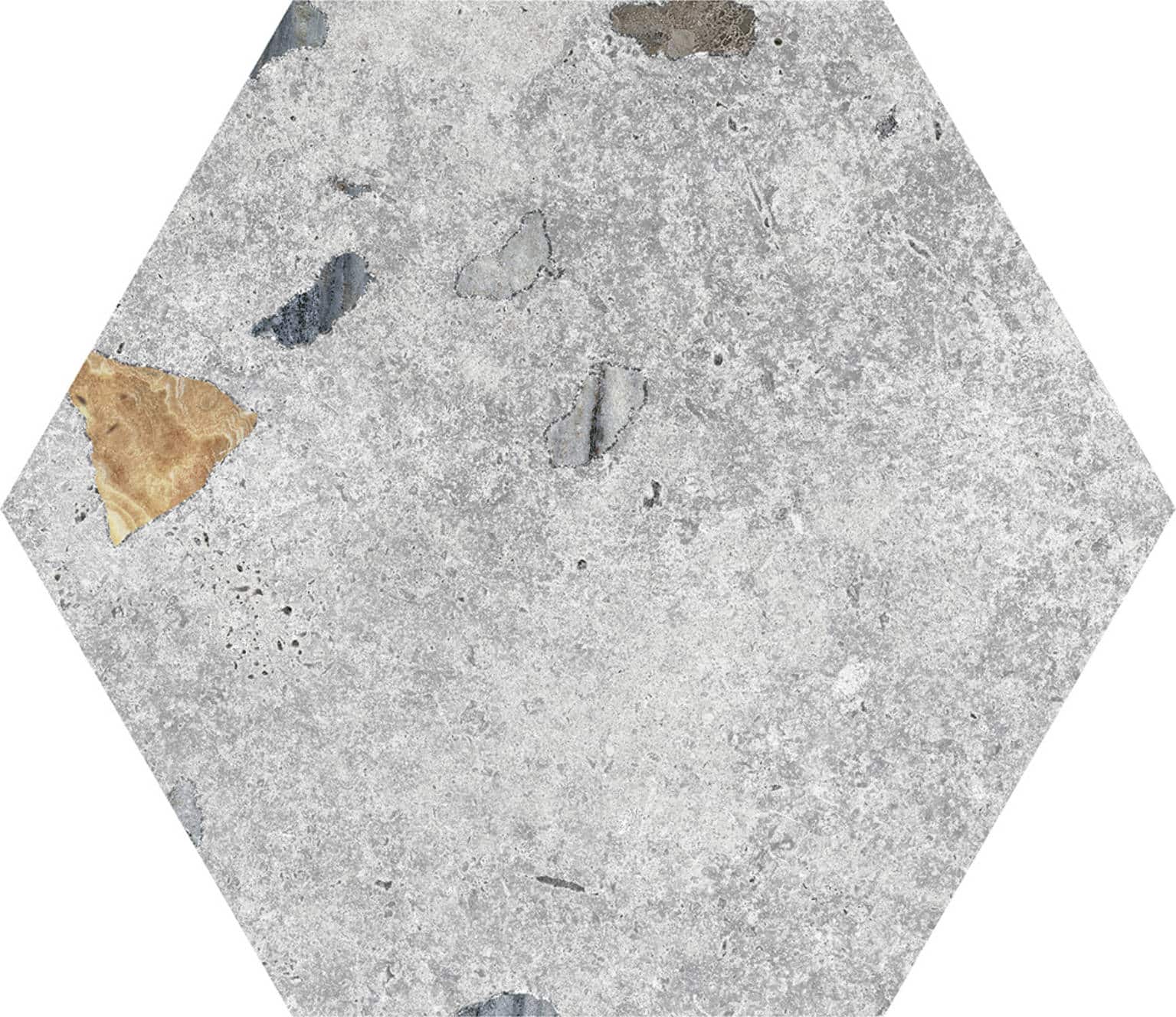 Porcelanato Español Hexagonal Sonar Silver 22×25 cm