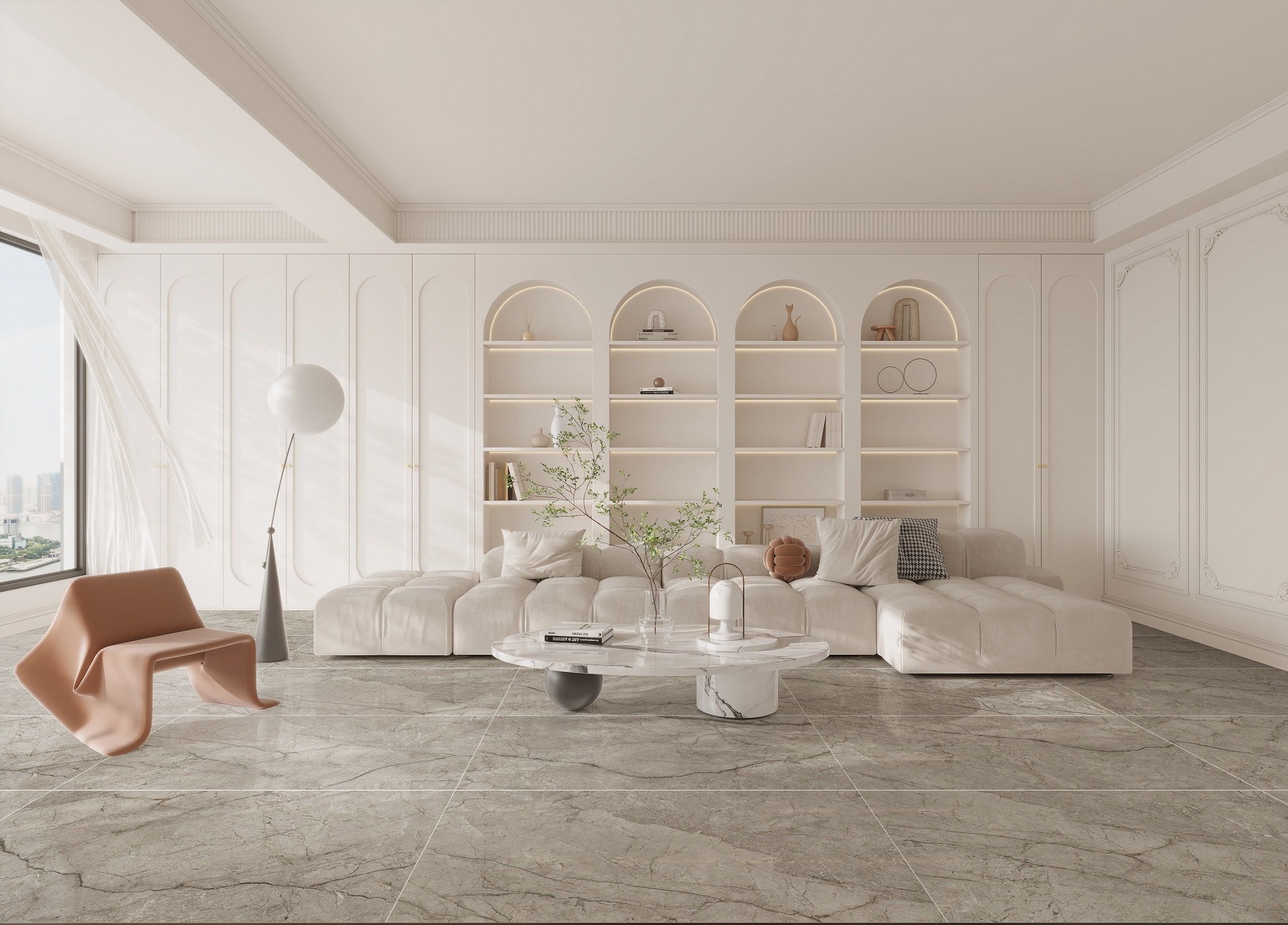 Inspirado en la elegancia atemporal del mármol natural. Su tono beige con vetas sutiles y naturales, ofrece un look sofisticado y cálido que aporta luminosidad y amplitud visual.
