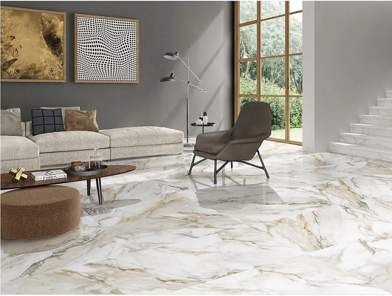 Se inspira en la majestuosidad del mármol de Carrara presentando un fondo blanco puro con vetas grises y doradas que combina lujo, sofisticación y atemporalidad