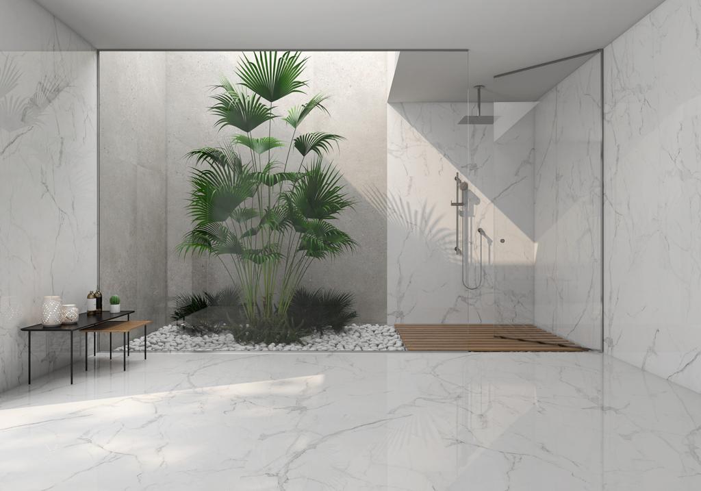 El porcelanato Statuario Silver es una interpretación del mármol, el cual es un material hermoso y noble, su fondo blanco y veteado gris característicos del mármol calacatta y carrara permiten una lectura contemporánea de un clásico que embellece el espacio con elegancia y exclusividad.